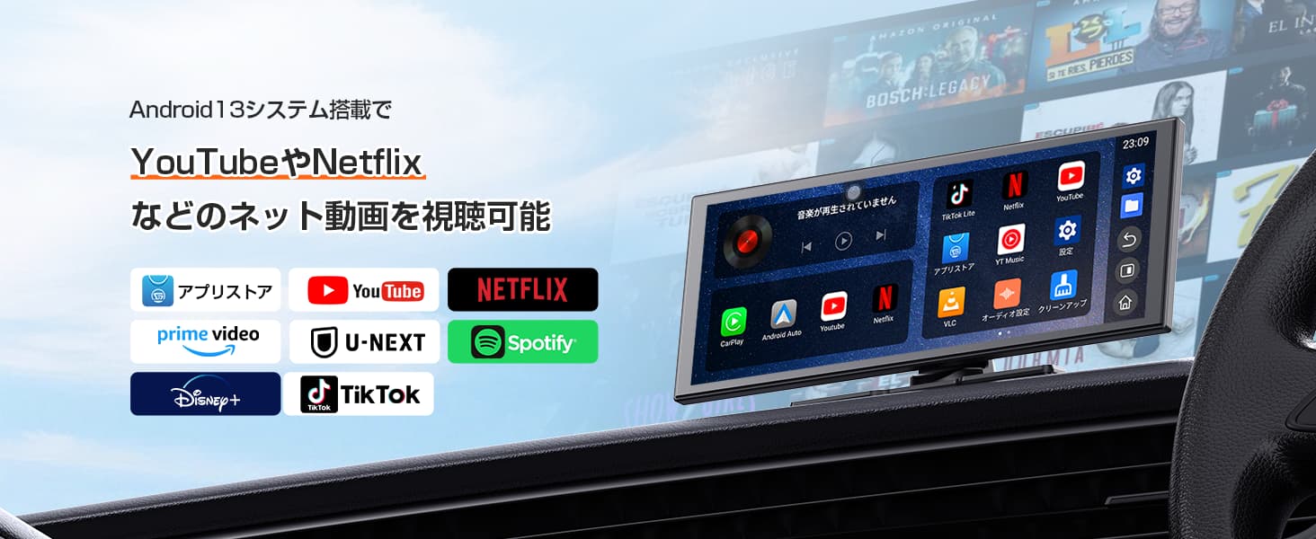ワイヤレス接続でCarPlay・Android Autoを簡単に利用でき、前後カメラとGPSトラッキングを内蔵。車やバイクでも、快適で安全なドライブ体験を実現します。