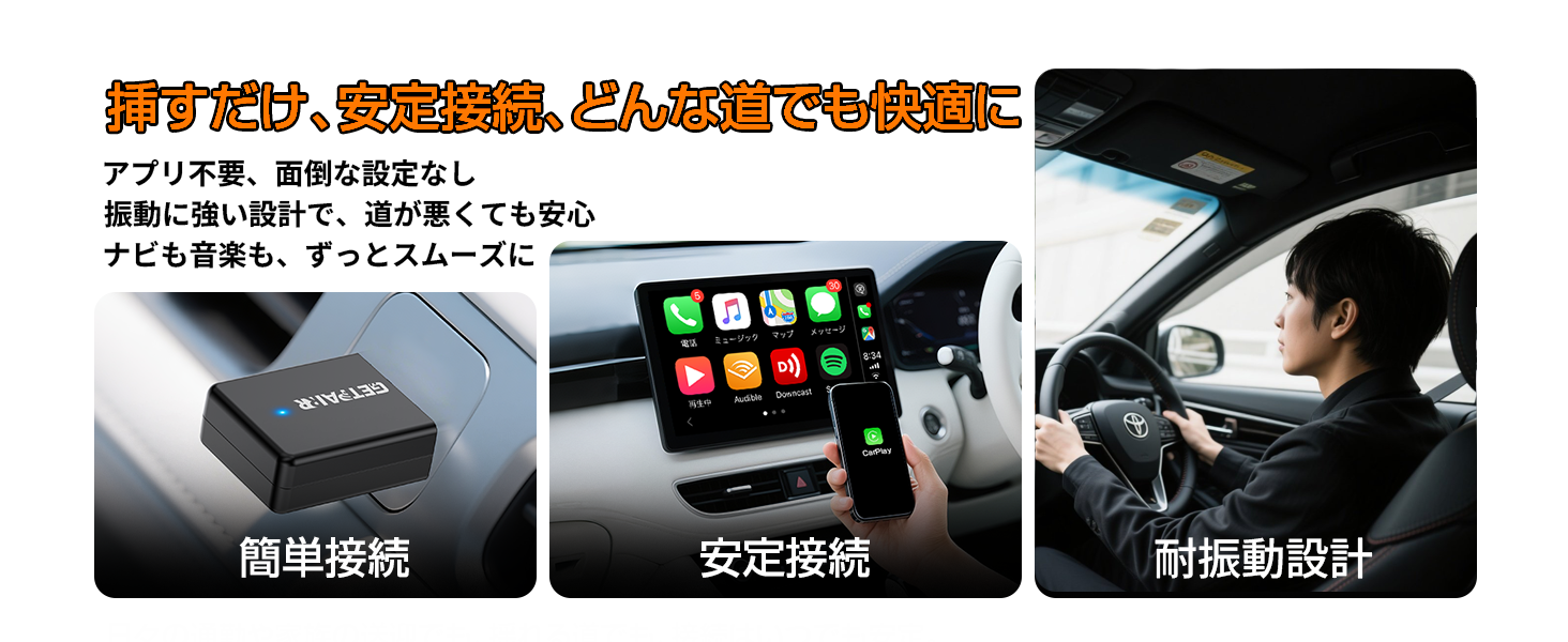 ✔️ 2 in 1 — 有線CarPlay&Android Autoを数秒でワイヤレス化